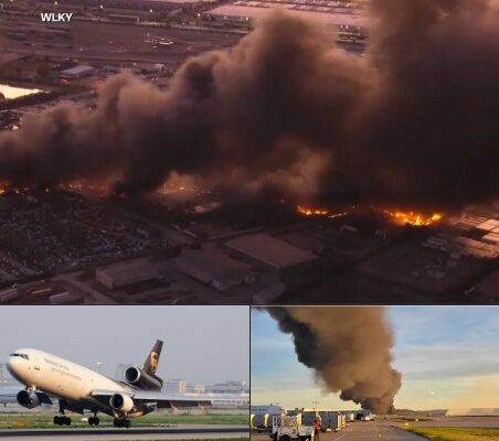 Chaos erupted near Louisville Muhammad Ali International Airport on Tuesday evening when a UPS cargo plane went down in flames shortly after takeoff. Thick black smoke billowed across the skyline as explosions echoed through nearby neighborhoods. Emergency crews rushed to contain the inferno in what officials are calling one of the worst aviation accidents in recent memory.